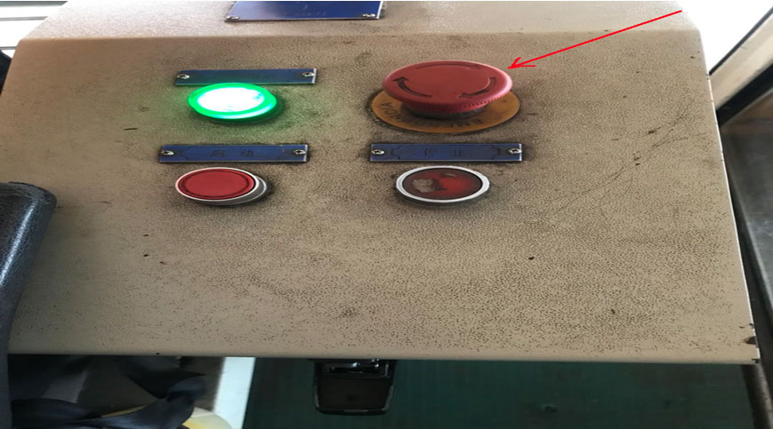 下图中箭头所示的安全保护装置是应急断电开关,关于应急断电开关,以下( )说法正确。