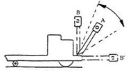 步行式场车的制动和转向都靠操纵杆控制,如下图所示,当操纵杆位于( )时,制动器必须起制动作用。