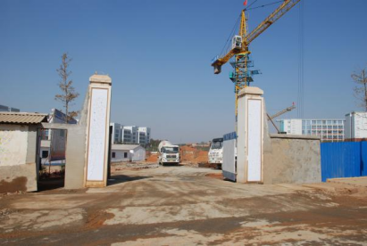 如图所示施工大门,根据建筑施工安全检查标准JGJ59-2011文明施工检查评分表要求,施工现场出入口大门应设置哪些标识标牌和设施( )?