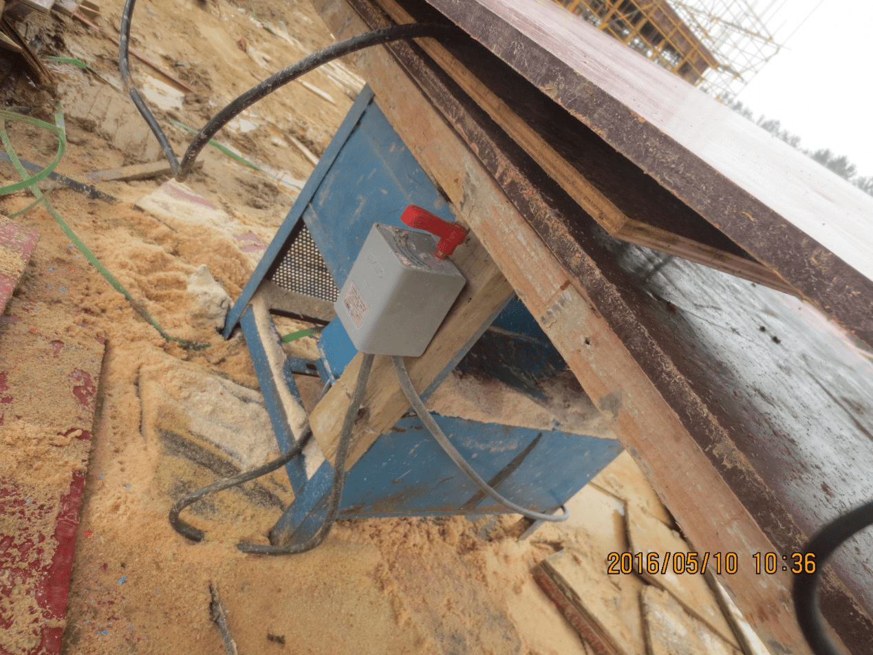 按照《建筑施工安全检查标准》要求,请指出下图木工圆盘锯存在什么安全隐患?( )