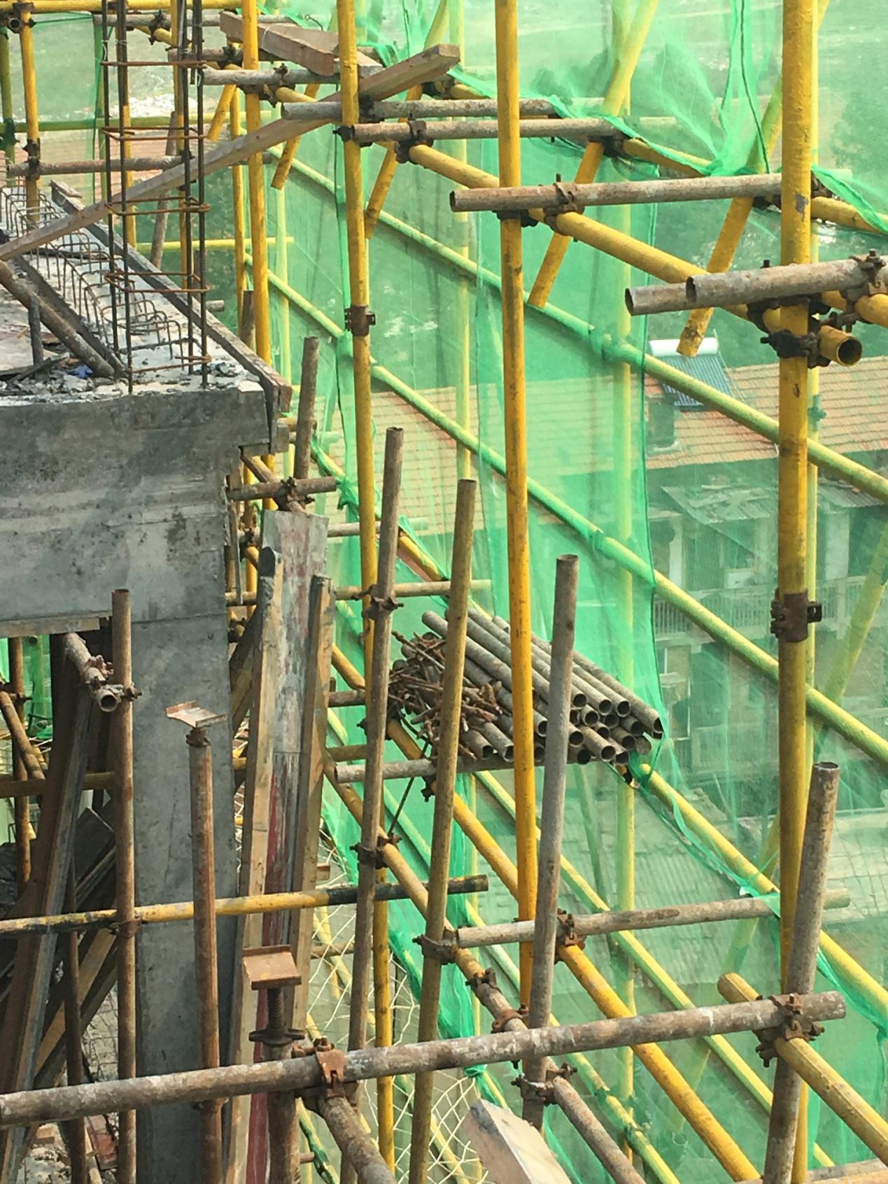 D、作业工人未戴安全帽