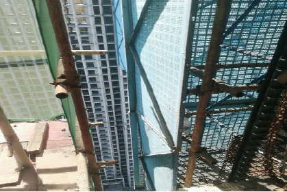 D、架体上钢板网破损严重