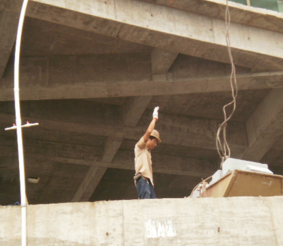 B、外架上垃圾没有及时清理