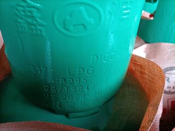 图示液化石油气钢瓶护罩上由充装单位购买后打上的钢印编号是()。