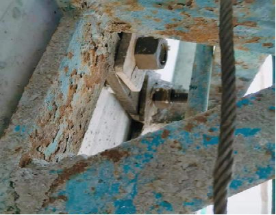 D、附墙锚固螺栓锈蚀严重