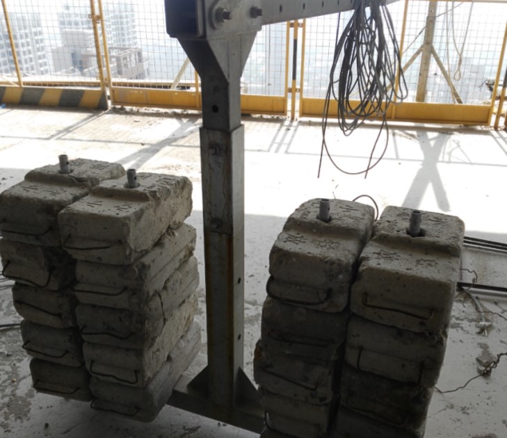 A、吊篮配重未上锁,无防止随意移动措施