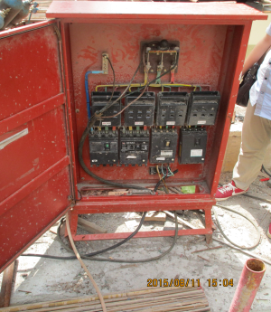 C、配电箱没有防护罩,雨水可能浸入损坏电器元件