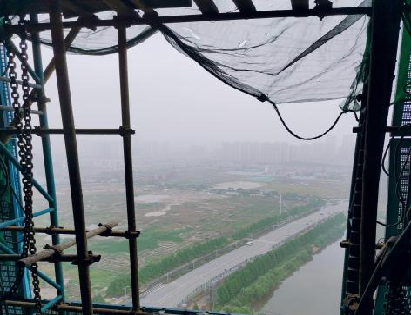 D、架体上污染严重