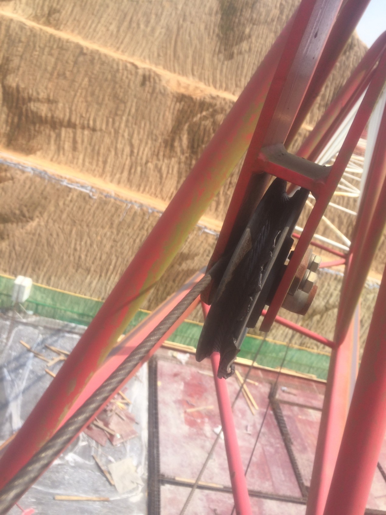 某项目检查时发现塔机存在如图所示隐患,该隐患是:( )。