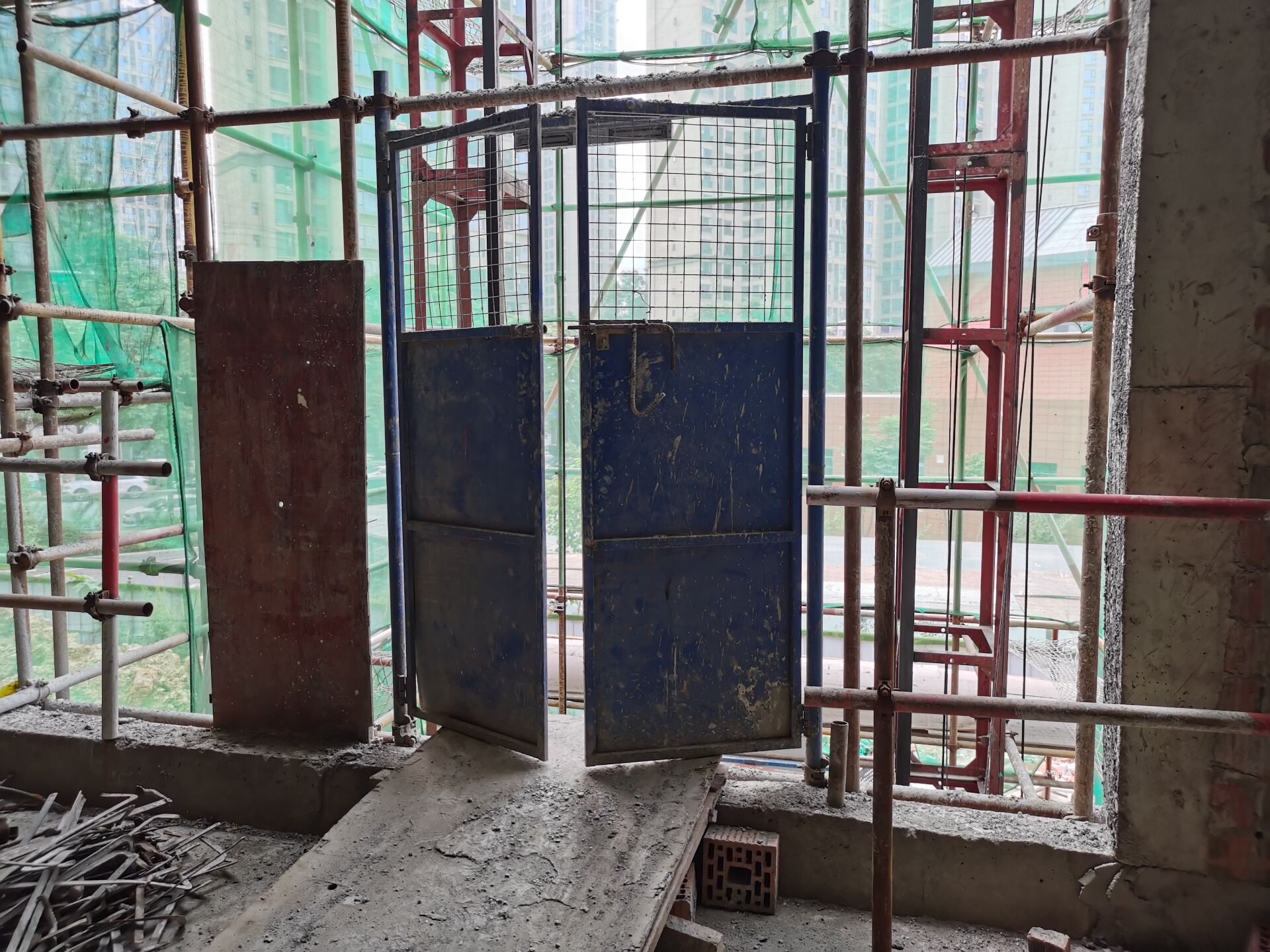 D、施工电梯门没有关闭