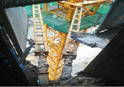 D、塔吊附墙处防护缺失