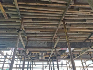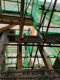 图中模板支撑立杆受力情况,存在的安全隐患是( )。