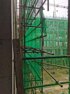 如图所示脚手架在施工电梯开口处,存在的安全隐患是( )。