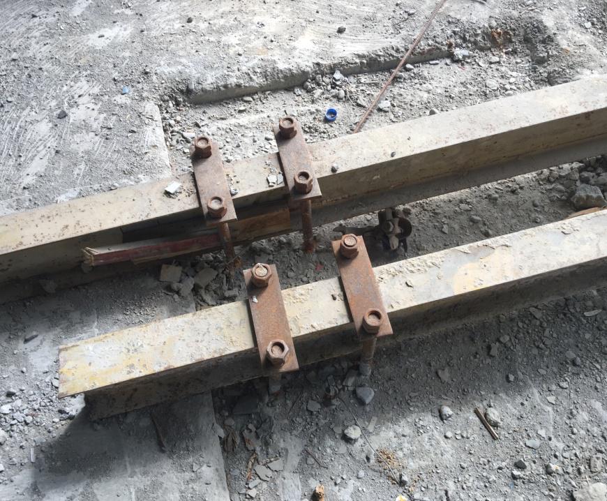 B、锚固螺栓与型钢间隙未采用用钢楔或硬木楔楔紧