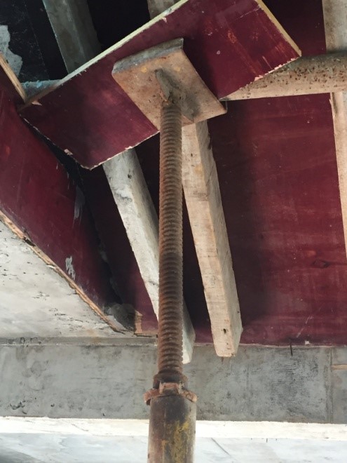 B、顶托托板未托住木枋或钢管