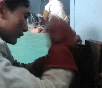 正在清渣的焊工为了看的更清楚,可以如图操作。