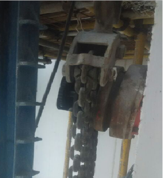 图中采用环链葫芦作升降动力时,应严密监视其运行情况, 及时排除( )正常运行的故障。