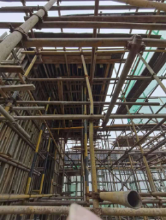 如图模板支撑中架体杆件存在安全隐患的是 ( )