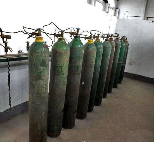 下图所示正在充装台上充装的气瓶,是( )。