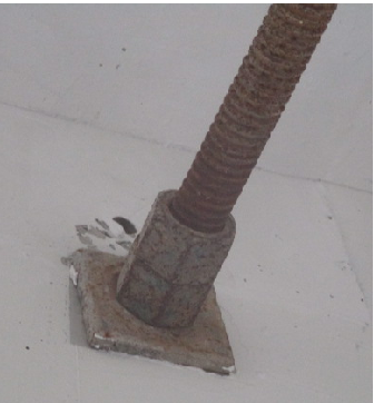 据图所示,附墙支座受拉螺栓的螺母不得少于两个或应采用弹簧垫圈加单螺母,垫板尺寸应由设计确定,且不得小于( )。