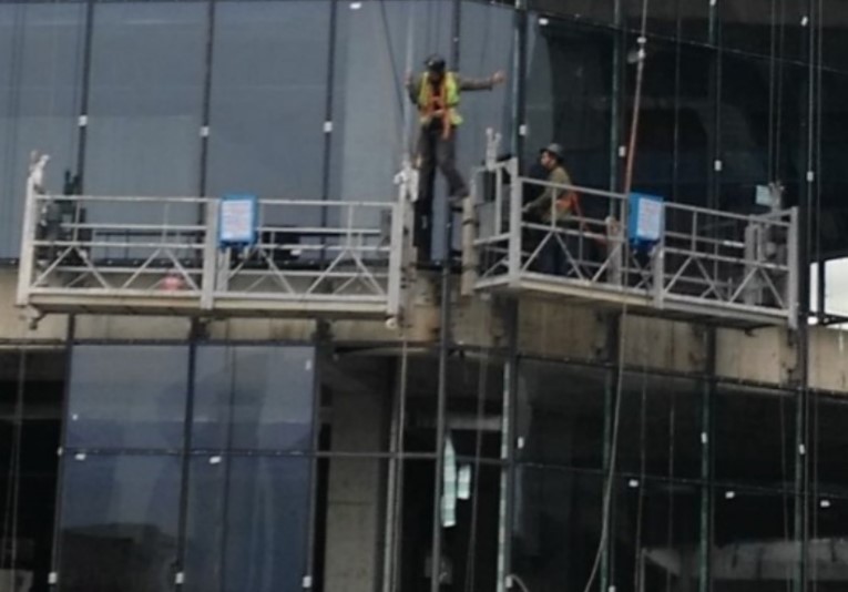 D、图示作业人员未将安全带系挂在吊篮钢丝绳上