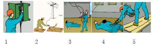 下图解救低压电源触电者脱离电源的方法,做法错误的是()。