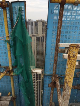 D、架体上钢板网破损严重