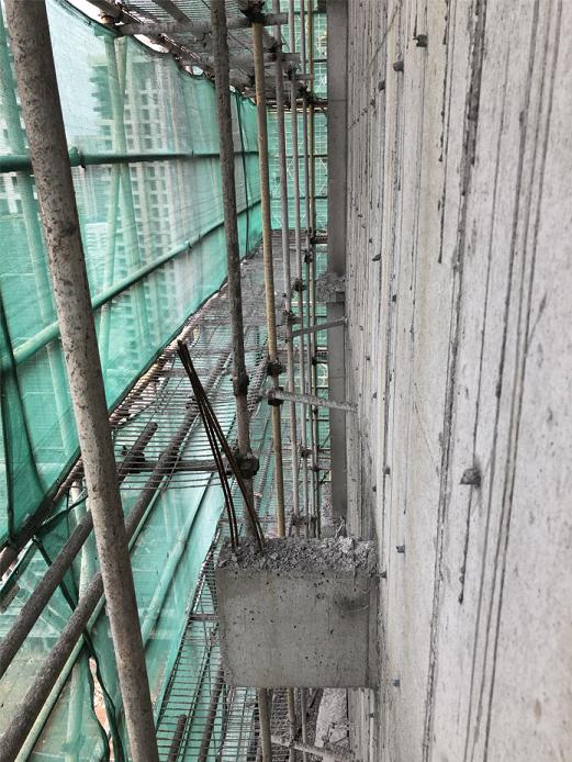 A、脚手架架体离墙间距过大,无防护