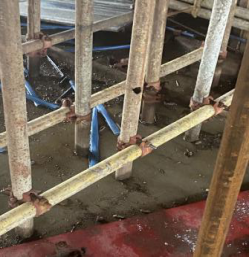 图中主框架桁架明显变形,根据【JGJ202-2010】规范应当更换,同时还存在哪个问题( )
