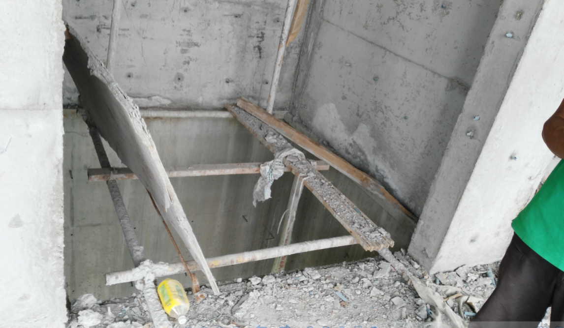A、施工电梯基础严重积水