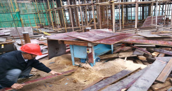 D、施工现场有人员未佩戴安全帽