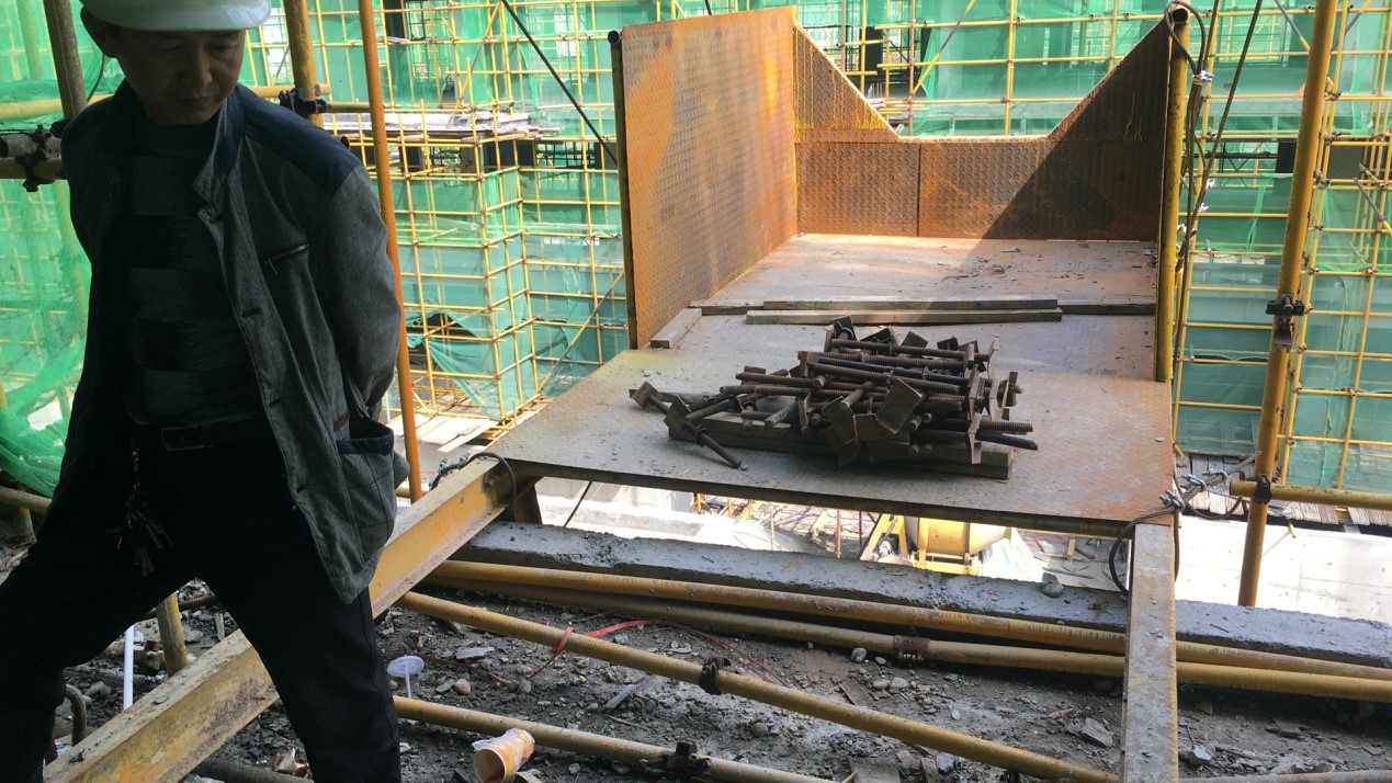 下图中卸料平台下方存在的最大安全隐患是什么?( )