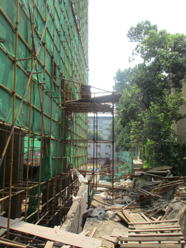 D、锯沫渣、模板、木方等易燃材料乱堆乱放,未及时清理归堆,堵塞通道