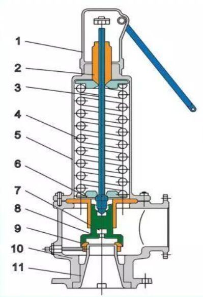 下图为弹簧式安全阀结构图,图中“11”()?
