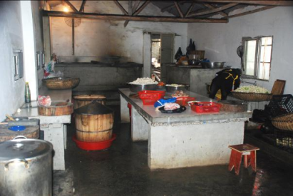 B、食堂未配备排风、准冷藏、消毒、防鼠,防蚊蝇等措施