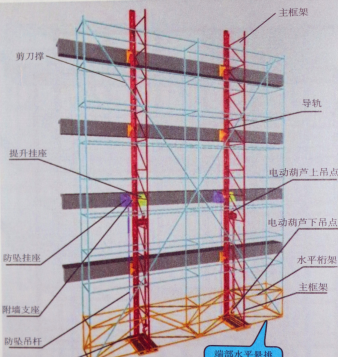 图中附着式升降脚手架架体水平悬挑长度不应大于( ),且不应大于跨度的( )。