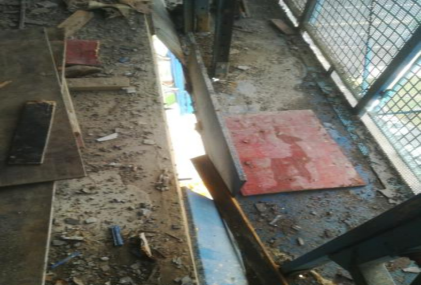 据图所示附着式升降脚手架,存在的主要问题是( )