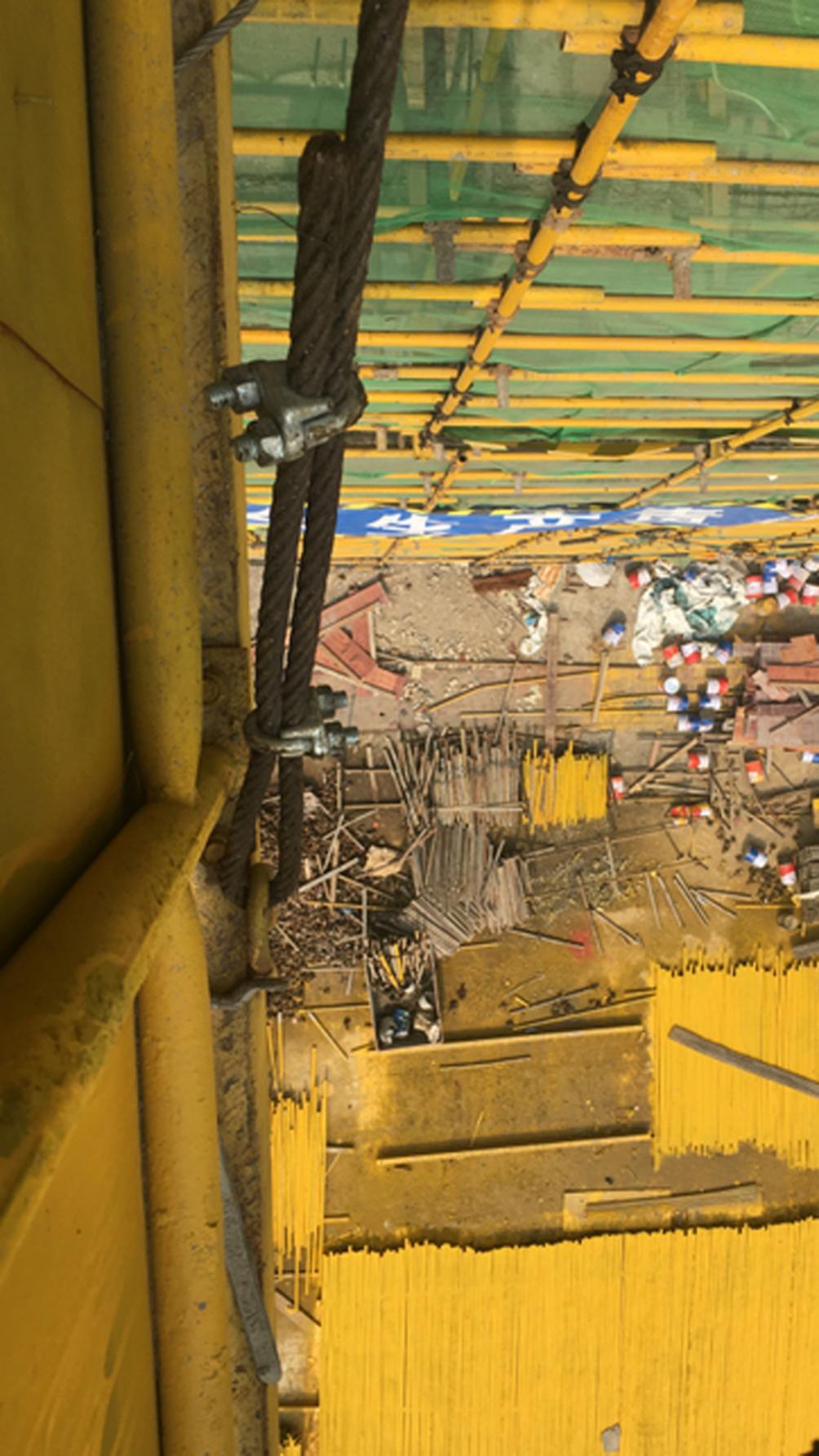 C、斜拉钢丝绳设置不符合规范要求