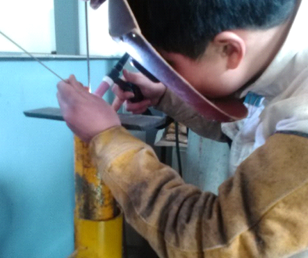 作业过程打磨机放工作台上容易掉下来,可以如图操作。