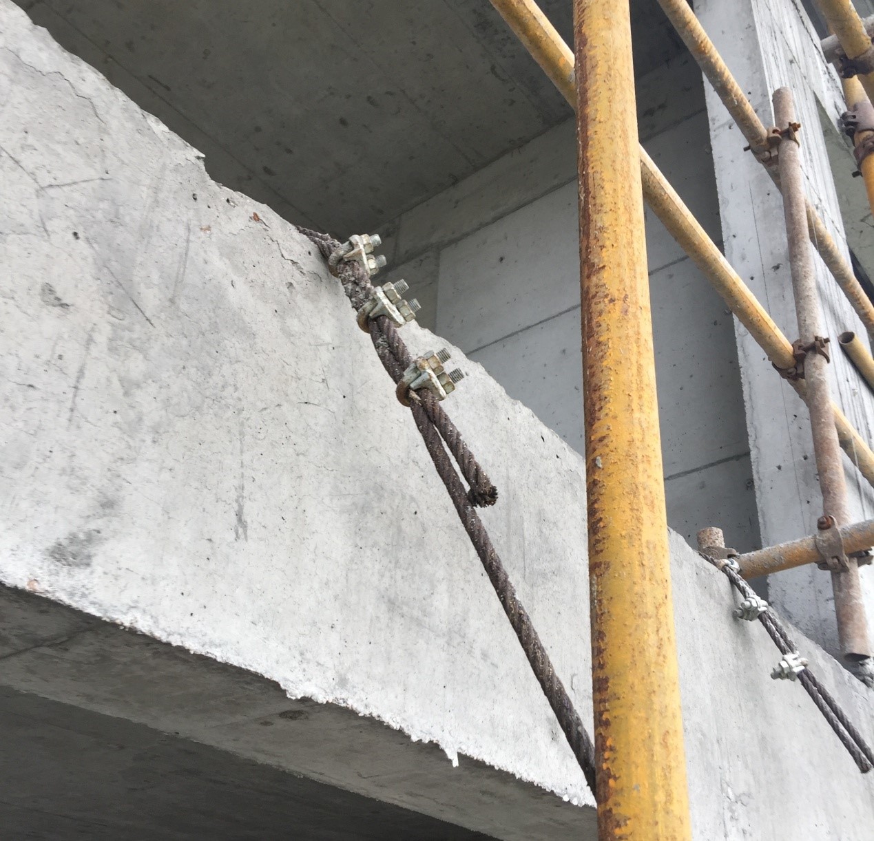 图中钢丝绳的固定,主要存在以下哪几个问题?()