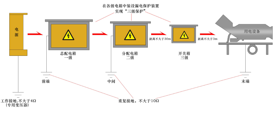 2013年某工地发生一起漏保失效致工友身亡事故,究其原因是工友私自从总配电箱接线使用,结果总配电箱漏保失效导致;那么,下图展示中,要求现场临时用电必须达到()级配电系统。