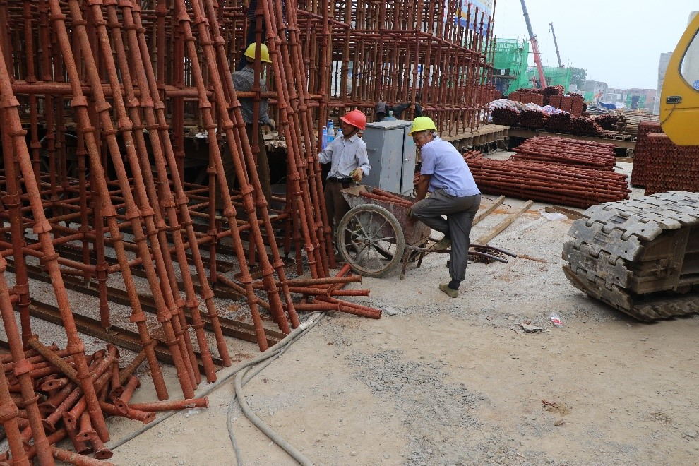 D、脚手架小横杆设置错误