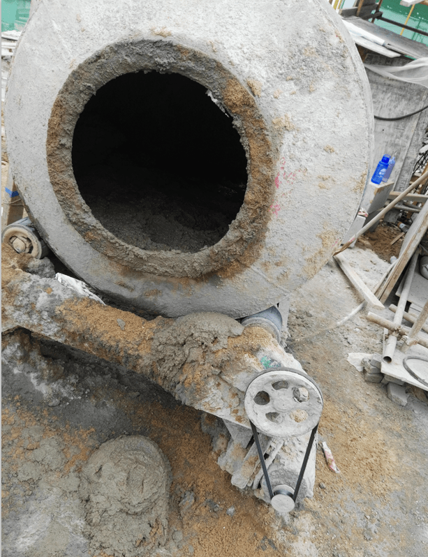 A、搅拌机传动轮没有防护罩,使用时应用一块大模板盖住即可