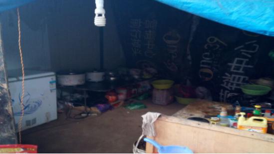 E、民工使用雨布、模板搭设临时厨房
