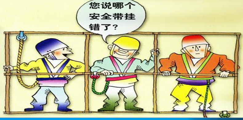 据图所示,安全带挂错的是哪个人,从左至右