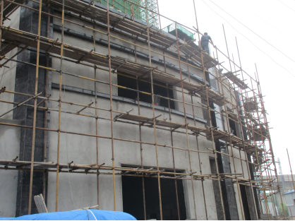 A、外脚手架立面无安全网