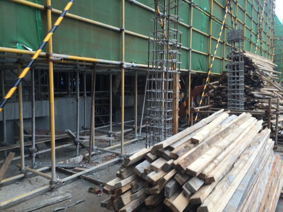 C、木枋等材料堆靠在架体上