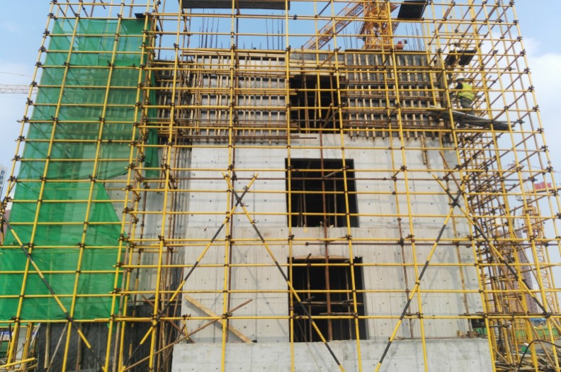 A、外架立面未挂设安全网封闭防护,存在高空坠物风险