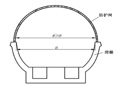 水滑道防护网示意图如下图所示,防护网截面直径与水滑道的最大截面宽度的关系是()。