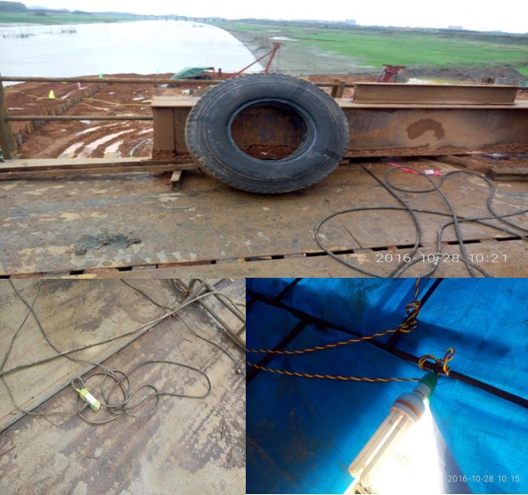 A、钢栈桥施工作业临时用电电线未采取穿管保护措施